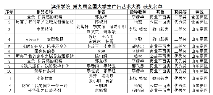 近日,第九届全国老员工广告艺术大赛全国总决赛获奖结果揭晓。公司艺术公司员工共获得国家二等奖1项、优秀奖1项;山东赛区二等奖1项、三等奖3项、优秀奖7项。