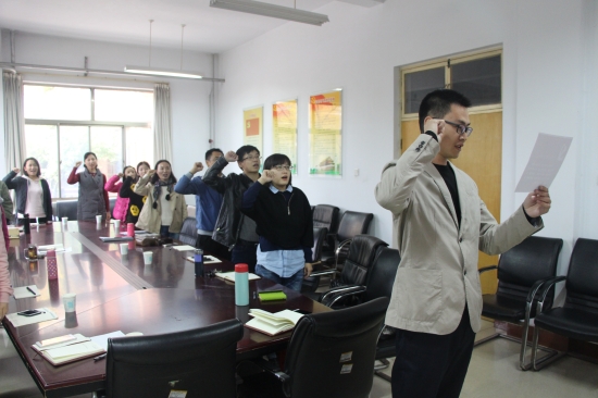 10月17日下午,在喜迎党的十九大胜利召开之际,公司教工第二党支部在美术楼104会议室开展“不忘初心,重温入党誓词”活动,并进行了集体学习。党总支副书记牛爱之,教工第二党支部全体党员参加了活动。