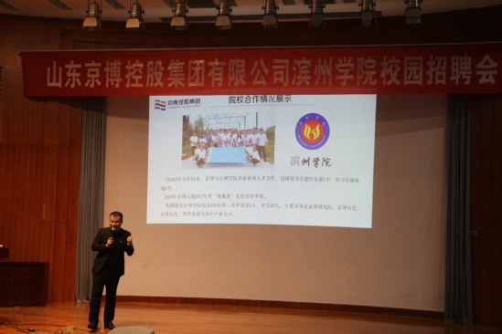 招聘会上,京博控股集团有限公司人力资源部负责人员以“毕业在即,我们该如何选择”为主题,详细讲解了京博控股集团有限公司的发展前景,并介绍了集团公司的生产经营、企业文化建设、人力资源管理、用人岗位和招聘条件等方面情况。