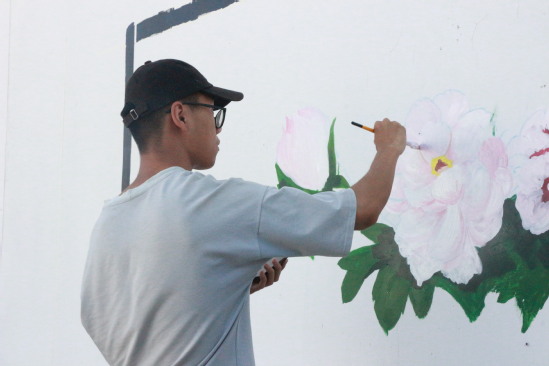在阳信县水落坡镇大张村,公司党委副书记宋淑平,团委副书记于峰,公司党总支书记赵书杰,滨州团市委副书记唐全,阳信县委副书记于江荣等一行看望了服务团的师生,详细了解服务团的工作、生活情况,观看了服务团的精美墙绘作品。宋淑平希望,同学们要把参加社会实践活动作为人生成长历练的一次宝贵机遇,要结合艺术专业特点,扎根基层,服务人民,以知促行、以行促知,做到知行合一,在实践中不断增强服务社会、服务人民的本领。