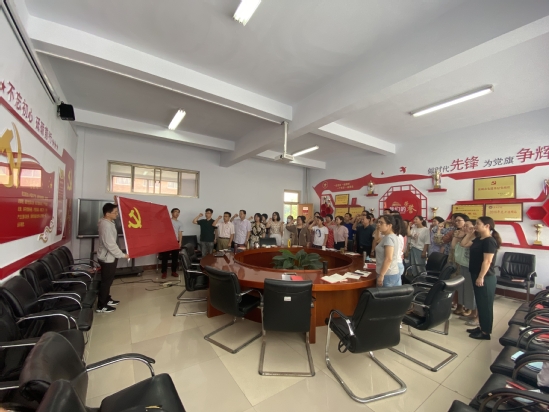 “我志愿加入中国共产党,拥护党的纲领,遵守党的章程……”在党总支副书记牛爱之的领誓下,全体教工党员面向党旗,举起右拳,庄严神圣的向党旗宣誓,寻找入党时的激情,表达对党的忠诚、对共产主义事业奋斗终身的决心。