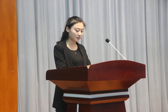 教师代表樊雅琳老师、在校生代表张晓语同学、新生代表李佳萱同学分别上台发言。员工科科长王永传达了《滨州公司2020级员工入学教育实施方案》,对在校期间的早操、上课出勤、课堂纪律、宿舍卫生、早晚自习、英语寝室等提出了具体的要求。