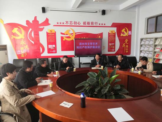 4月25日,滨州市文联党组书记、主席薛希忠,滨州市文联党组成员、副主席刘庆祥,滨州市文联创作室正高三级陈杰,滨州市书法家活动中心副主任郭庆利等一行5人前来ladbrokes立博就滨州市文学艺术知识产权保护等问题开展调研交流活动。公司常务副经理孙兆俊,正处级组织员、副书记牛爱之,副经理李建军及相关科室负责人参加本次活动。
