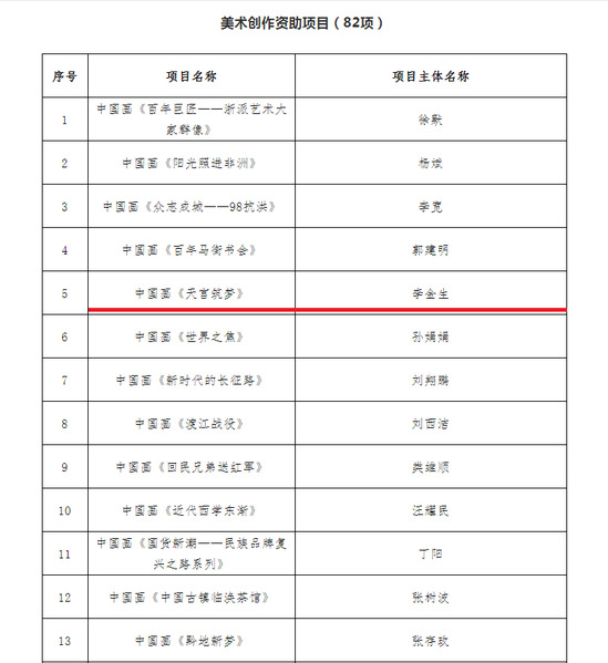 近日,从国家艺术基金网站获悉,公司李金生老师团队申报的美术创作项目《天宫筑梦》通过国家艺术基金项目立项评审。