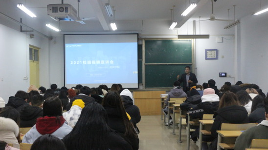 招聘会上,鲁南制药集团相关负责人简要介绍了企业基本情况、发展历程、企业发展理念、发展方向以及招聘岗位的职责、要求等,并详细介绍了招聘岗位薪资福利及晋升路线。在互动环节,同学们就关心的薪酬待遇、生活保障、晋升途径等具体问题和相关负责人进行深入交流。