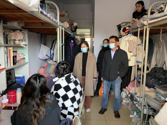自疫情暴发以来,同学们从教室、图书馆回到了寝室,每日可活动的空间只有小小的宿舍。为了稳定同学们的情绪,做好相应的安抚工作,辅导员们将每天的办公场地搬到了员工宿舍。