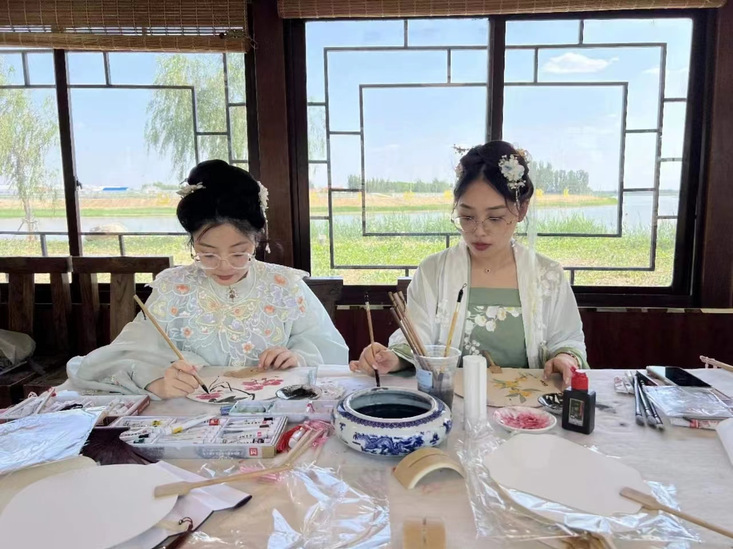 秉承着“传统与新潮互动,文化与快乐碰撞”的主旨,公司师生确定了以传统舞蹈、扇面绘画为载体的特色主题文化宣传活动。将人们喜闻乐见的舞蹈与绘画与三河湖镇本地文化特色结合起来,在一阵阵优美的音乐中,公司舞蹈专业的员工身着汉服,在三河湖镇美丽的风景下翩翩起舞,河畔边、木桥上、小路旁都有她们跳动的身姿,随风飘扬的裙摆拨散了夏日的炎阳,给三河湖镇带去了一抹青春靓丽的风采,使市民群众更加关注乡村发展,传承传统文化,也使得人们对三河湖镇有了更全面的了解,吸引更多市民,助推乡村旅游发展。