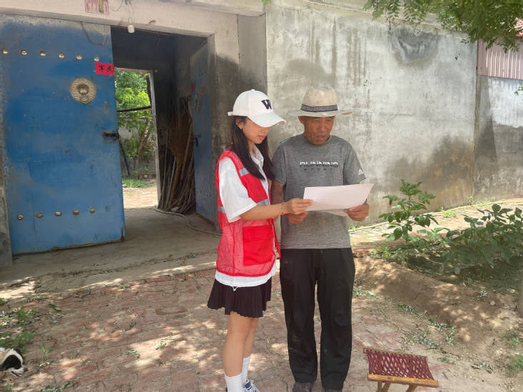 22设计本1靳晓燕同学前往滨州市惠民县进行实践活动,其按照县委县政府大干2023工作部署和县基本公共服务满意程度的工作安排,通过认真梳理分析,并结合其县实际,在居住环境、社会治安、基本医疗、文体生活、基础教育、社会帮扶等6大民生领域组织实施的系列民生实事项目对其向广大群众进行普及和宣传,广泛接触基层、了解基层,深进基层。