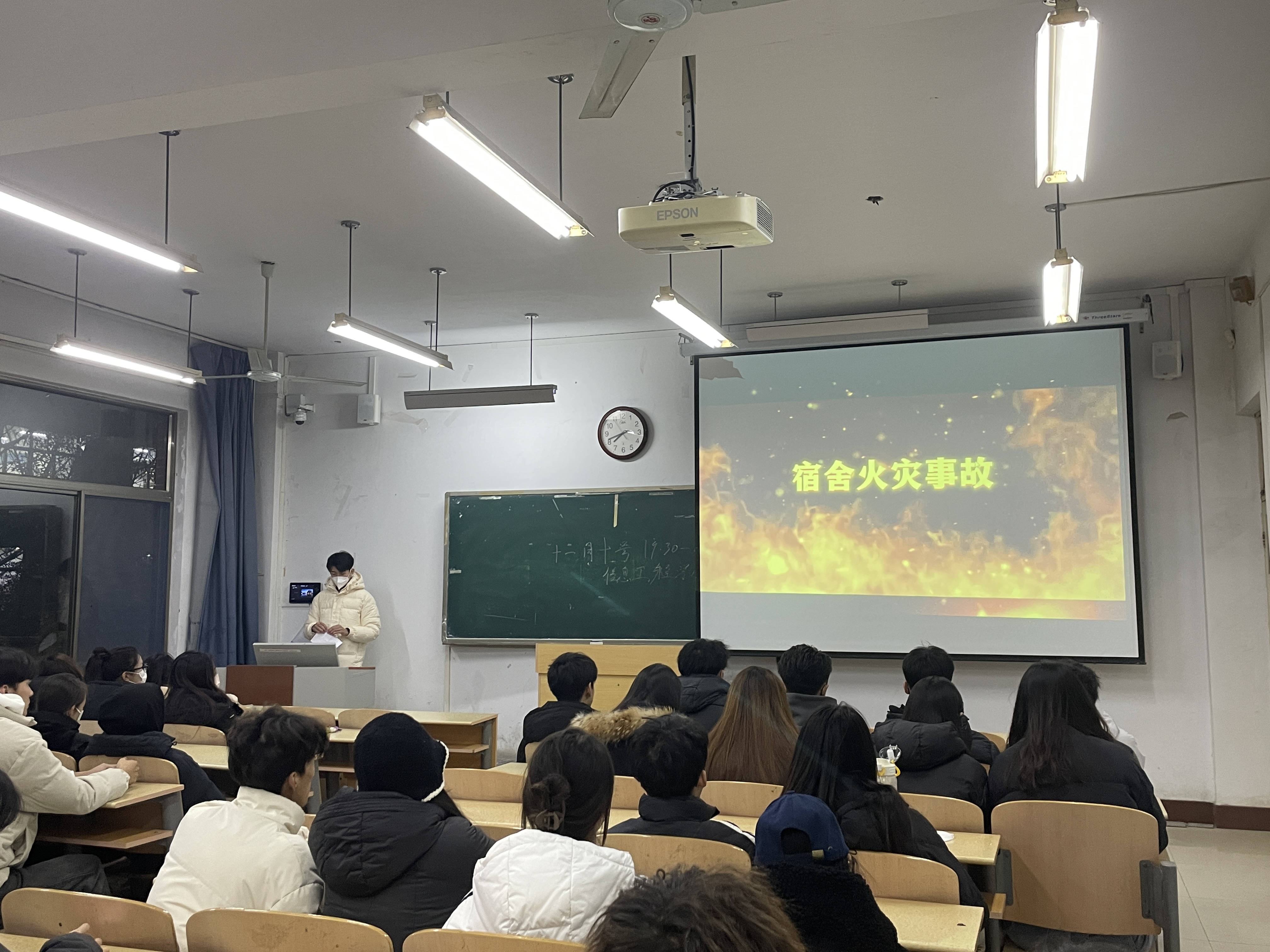 为提高同学们消防安全意识及自护自救能力。2023年11月16日晚,艺术公司组织部分员工代表观看火灾警示教育片。