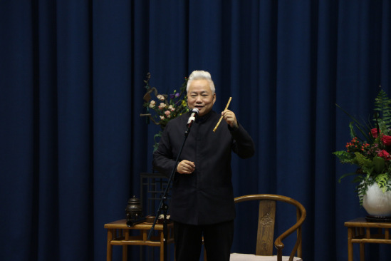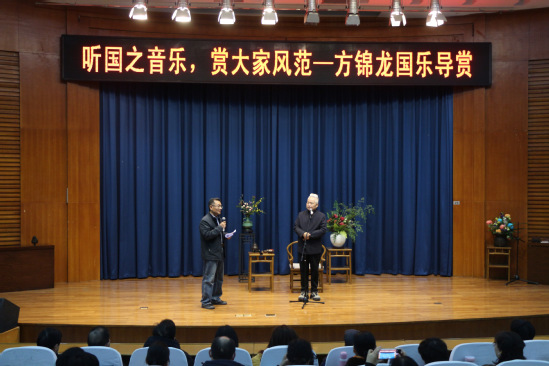 会议伊始,李经理为师生隆重介绍了方锦龙老师。方老师是国乐艺术家、乐器收藏家、音乐思想家、琵琶演奏家,他以多元、创新方式展现传统音乐的魅力,被誉为是“以无法为有法,惟独秀于诸家”的传统文化守望者。方老师曾先后出访欧洲、亚洲、非洲五十多个国家,其琵琶演奏别具一格,激情与韵味并重,并擅长体现不同的特点和风格,受到国内外的广泛赞誉。
