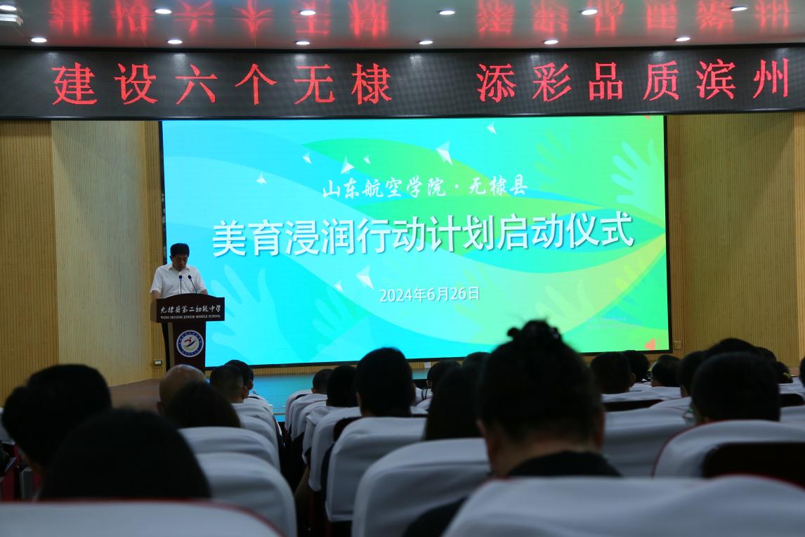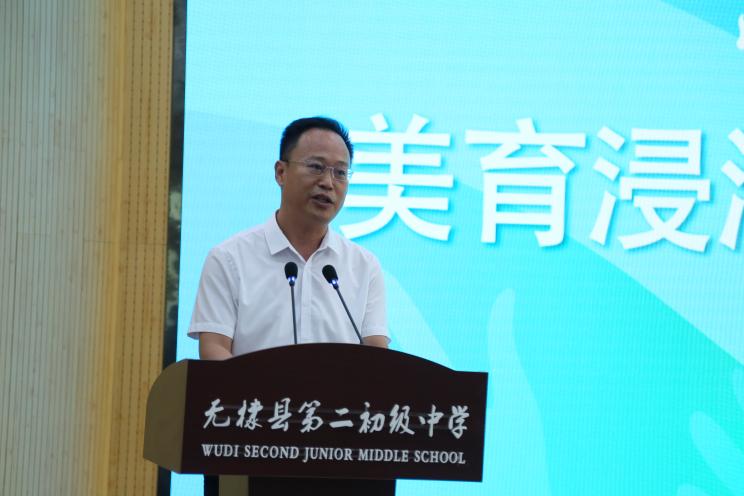 6月26日,ladbrokes立博·无棣县美育浸润行动计划启动仪式在无棣县县第二初级中学报告厅顺利举行。ladbrokes立博党委委员、副董事长郭新伟,滨州市教育科学研究公司党总支副书记崔方锋,无棣县人大常委会党组副书记、副主任蔡银芳,无棣县政府办公室副主任刘明博,无棣县教育和体育局党组书记、局长郭强,公司教务处处长章健、ladbrokes立博经理李建军等领导出席仪式。ladbrokes立博部分教师、无棣县各中小学、幼儿园有关负责同志及部分美育教师参加活动。