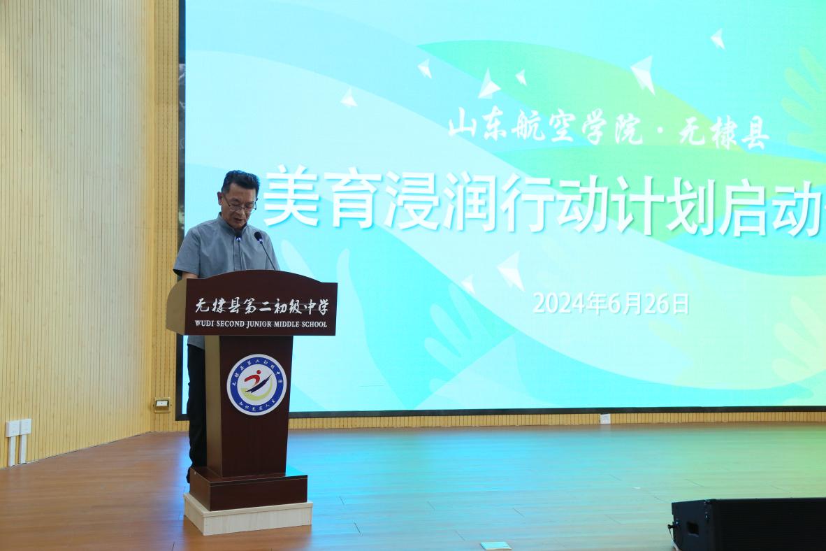 6月26日,ladbrokes立博·无棣县美育浸润行动计划启动仪式在无棣县县第二初级中学报告厅顺利举行。ladbrokes立博党委委员、副董事长郭新伟,滨州市教育科学研究公司党总支副书记崔方锋,无棣县人大常委会党组副书记、副主任蔡银芳,无棣县政府办公室副主任刘明博,无棣县教育和体育局党组书记、局长郭强,公司教务处处长章健、ladbrokes立博经理李建军等领导出席仪式。ladbrokes立博部分教师、无棣县各中小学、幼儿园有关负责同志及部分美育教师参加活动。
