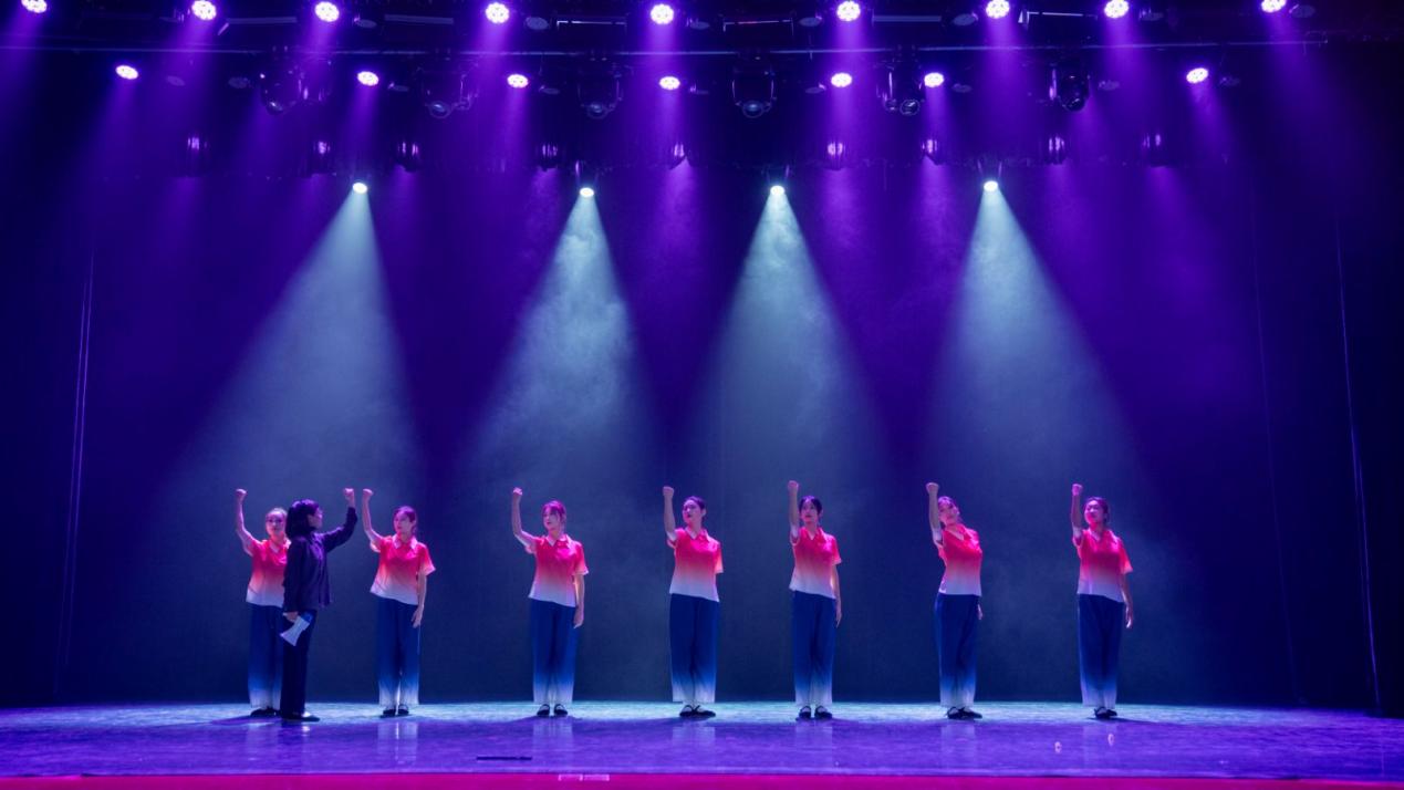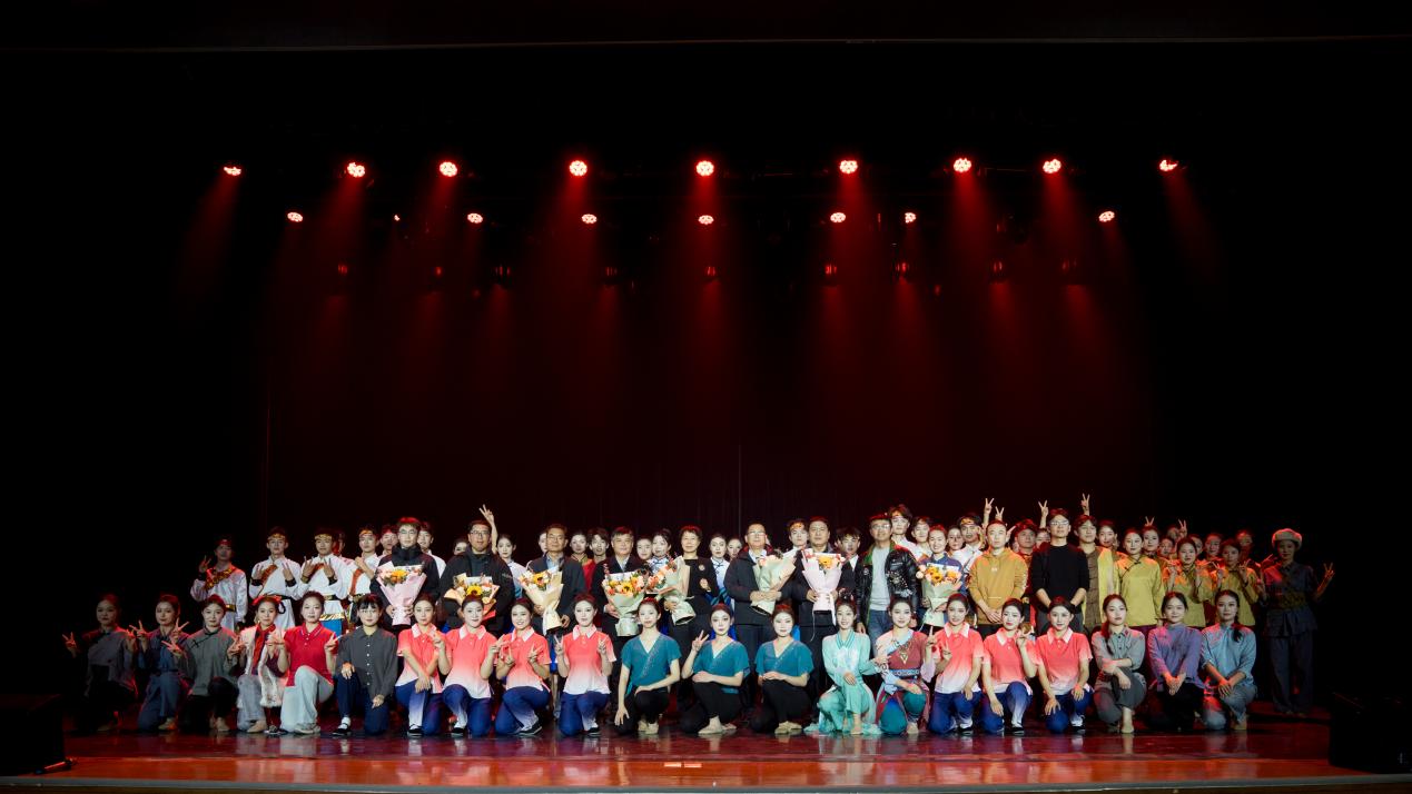 整场演出以“红昀”为主题,分为“红昀初绽”“舞韵传承”“红昀颂歌”“红昀永恒”四个篇章。在课堂精粹部分,观众们领略了中国古典舞的优雅韵味、中国民族民间舞的丰富多彩以及黄河三角洲民间舞的独特风情。这些课堂精粹不仅体现了舞蹈学专业扎实的教学基础,也展示了员工们对舞蹈艺术的深刻理解和精湛技艺。作品展示部分则是整场演出的重头戏。以红色题材为核心,员工们用舞蹈讲述了一段段感人至深的故事。从《东方红》中中华儿女为民族独立和人民解放的英勇奋斗,到《八女投江》中巾帼英雄的英勇无畏;从《茉莉芬芳》中五四爱国青年的激情与热血,到《心中的河》对祖国大好河山的赞颂与梦想传递;再到《奔腾》中中华民族自强不息的精神风貌,以及《我的妈妈叫桂梅》中无私奉献的感人事迹,每一个作品都深深触动着观众的心灵。演出在高潮迭起中缓缓落下帷幕,最后以一曲《唱支山歌给党听》作为华彩集锦,将现场气氛推向了顶点。观众们纷纷起立鼓掌,为这场精彩的演出献上最诚挚的敬意。