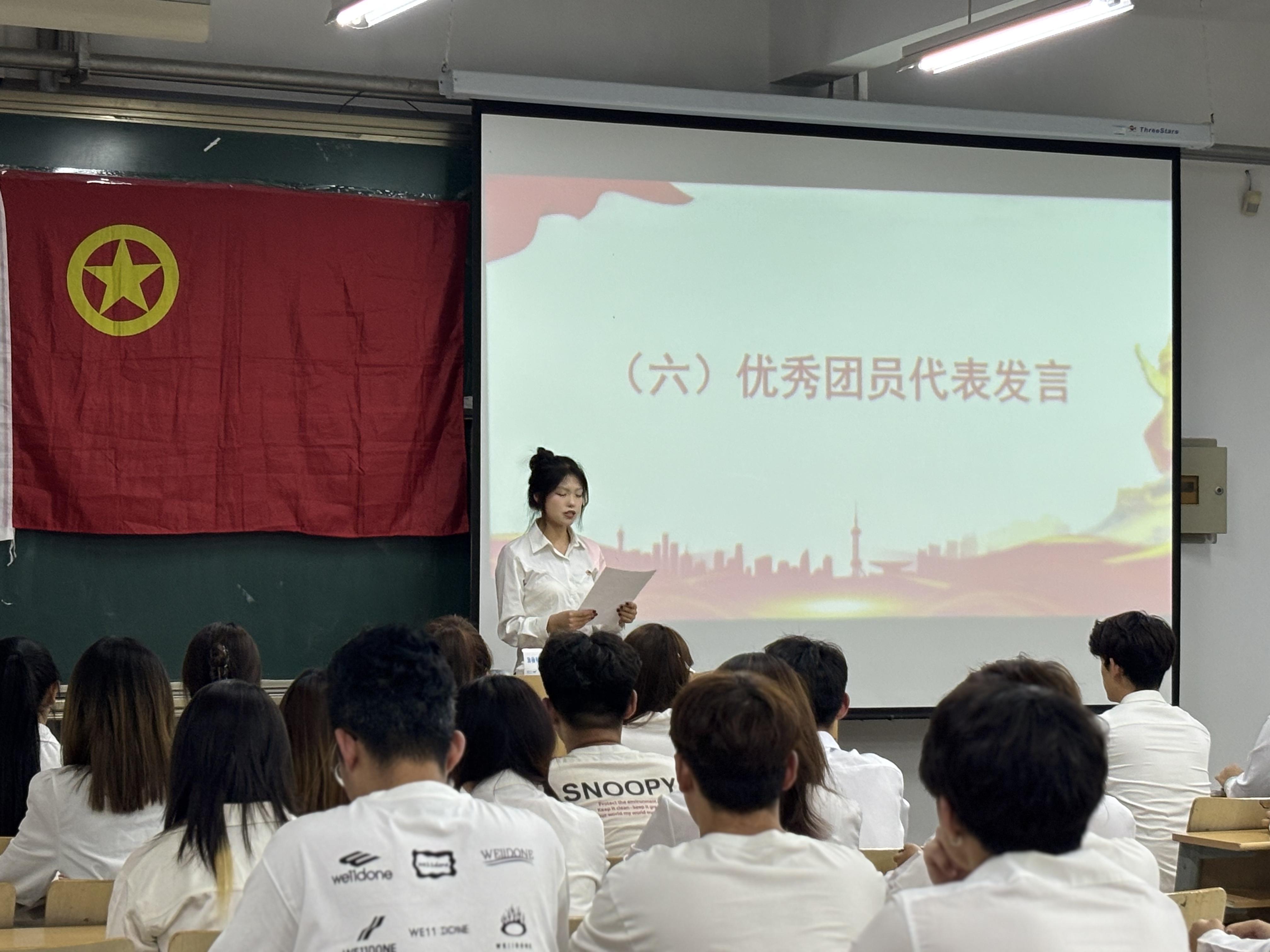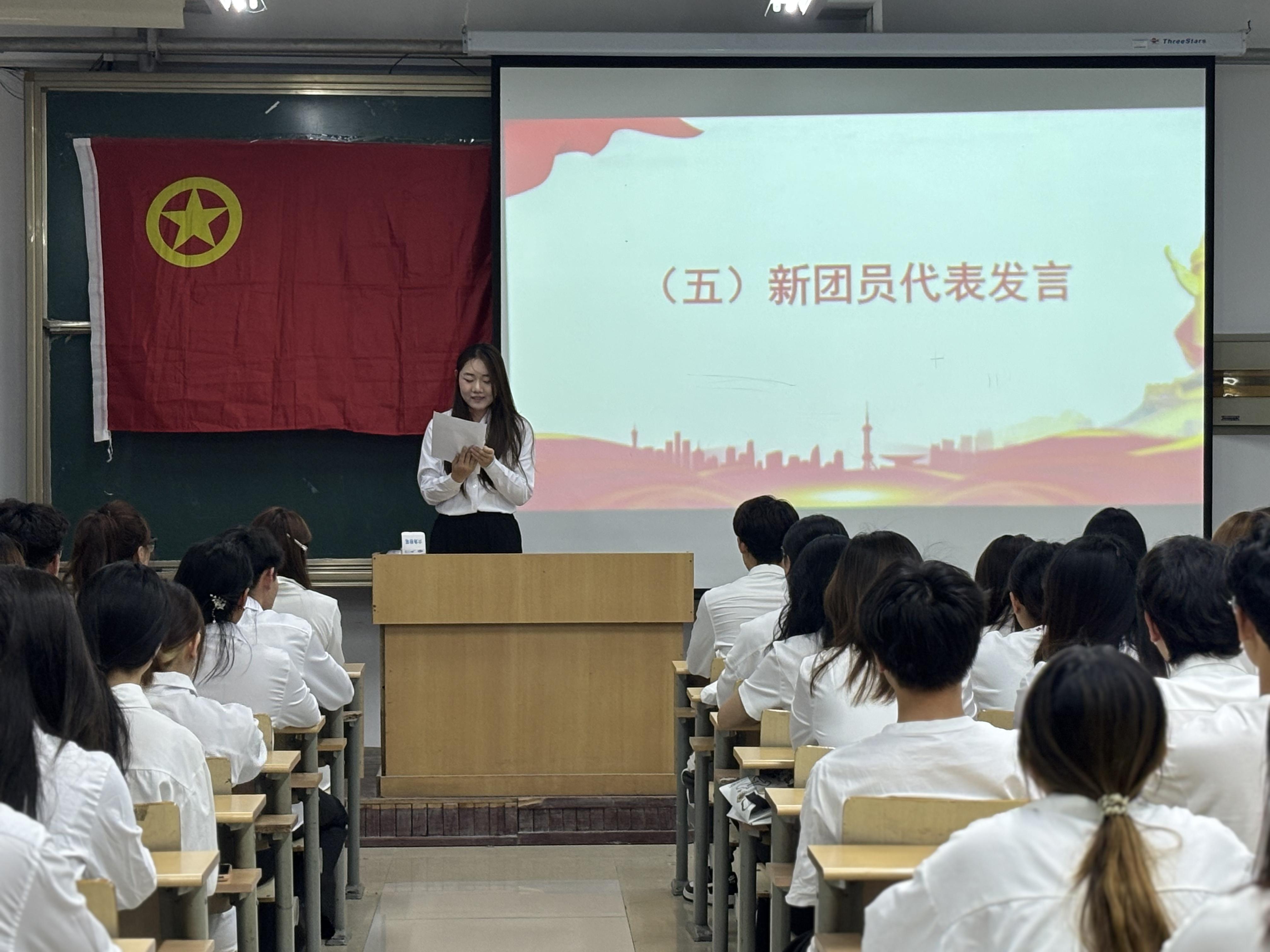 新团员代表王思彤、优秀团员代表孟庆含先后上台发言。王思彤分享了自己的入团初心,表达了成为团员后的自豪与决心;孟庆含结合自身经历,勉励新团员向优秀榜样学习,勤奋学习、积极进取,用实际行动践行团员使命。