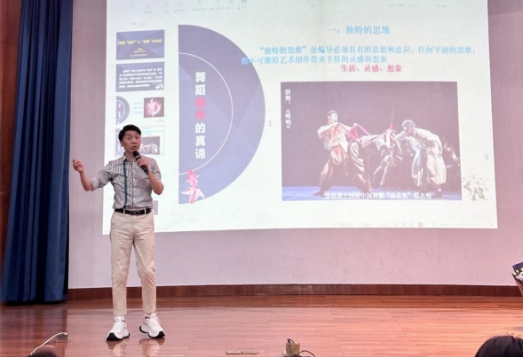 傅小青教授以舞蹈创作与表演的融合为核心,系统阐释了作品从创意孵化到舞台升华的全流程。在创作维度,他结合其代表作《唢呐》《闯关东》《喜鹊喳喳喳》等群舞作品,剖析了编创思维的独特性、题材选择的在地性以及结构设计的时空转化逻辑。他强调舞蹈题材是编导的心之所感、意之所属、形之所象,并通过动作语言的诗化、个性化与形式美,实现艺术表达的升华。在围绕舞蹈表演方面,他对作品中舞者的表演层次进行多维度解析,并深入探讨作品的情感内涵、悟性的理解以及舞蹈演员能力的依托。最后,傅小青教授针对舞蹈创作与表演过程中面临的现实问题提出解决方案,并对未来舞蹈艺术的发展趋势进行展望分析,他强调要将创作理念与表演技法深度融合,打造出精品的舞蹈作品。