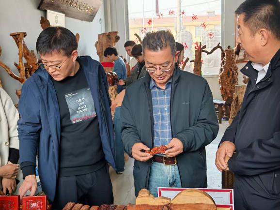 调研组先后实地考察冬枣农业生态园区、省级非遗项目“枣木雕刻”工坊、省级非遗“蓝印花布”工坊、沾化区博物馆、非遗保护传承中心(沾化渔鼓戏剧团)等。实地考察结束后,围绕沾化区文化资源的创意转化、非遗技艺的当代价值挖掘、文创产品的市场定位与开发策略等议题进行深入座谈交流,并提出建设性意见。