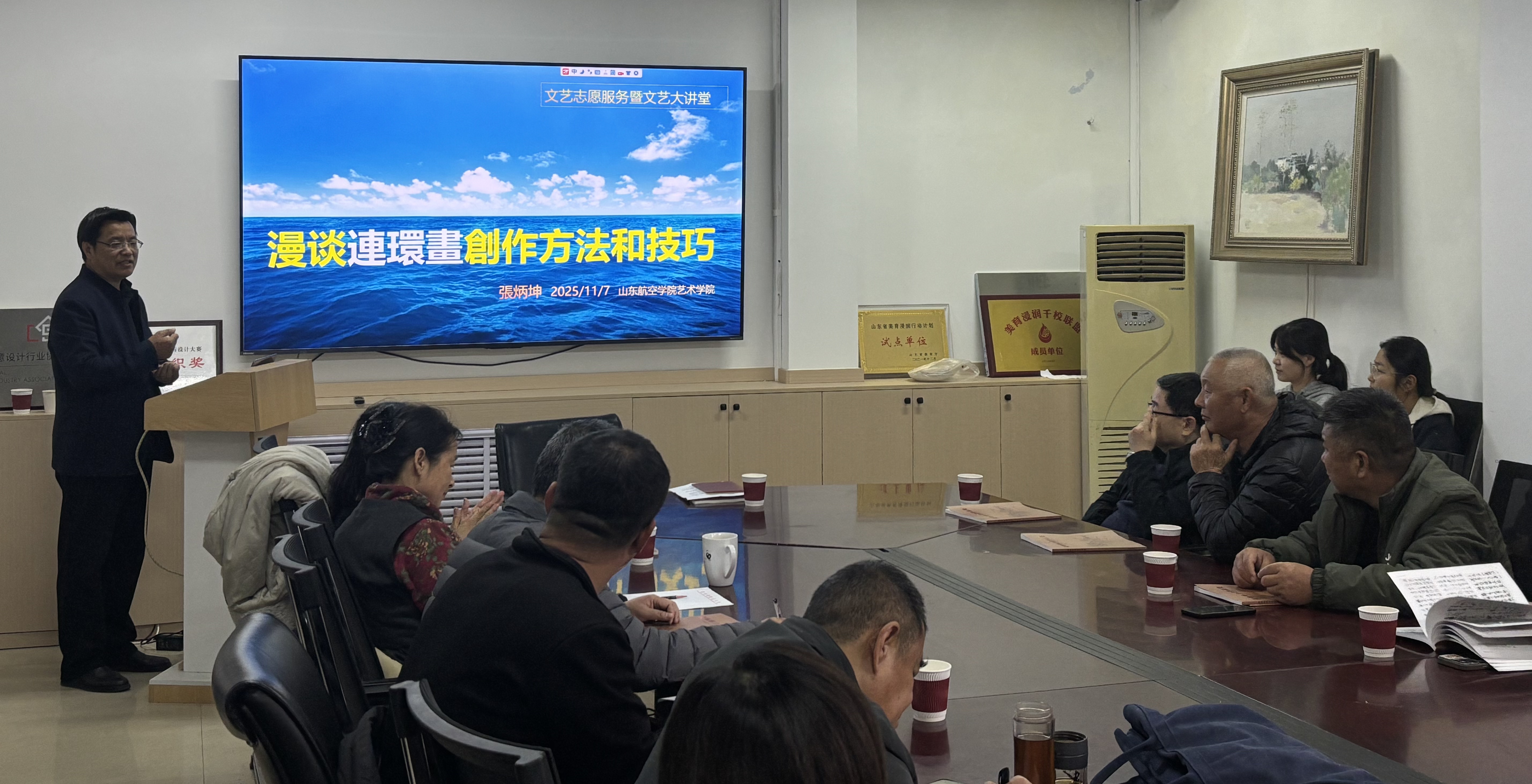 11月7日下午,在ladbrokes立博会议室举办了滨州市文艺志愿服务大讲堂暨艺术沙龙活动,邀请滨州市美协副主席兼秘书长张炳坤为主讲嘉宾,活动主题“漫谈连环画创作方法和技巧”,ladbrokes立博副经理王强主持本次活动。
