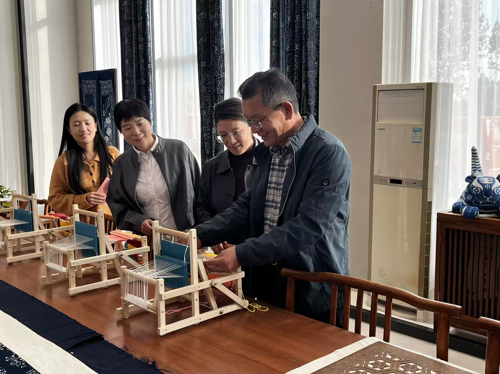 调研组先后考察城东街道老粗布文化馆、博兴县非遗展馆、草柳编编织基地、吕剧博物馆等点位。在企业考察中,调研组详细了解博兴老粗布、蓝印花布的制造流程、纺织面料的创新工艺及草柳编的创意应用场景;在非遗基地,深入观摩草柳编传承人指尖技艺、了解吕剧发展史,品读传统技艺的文化内涵。